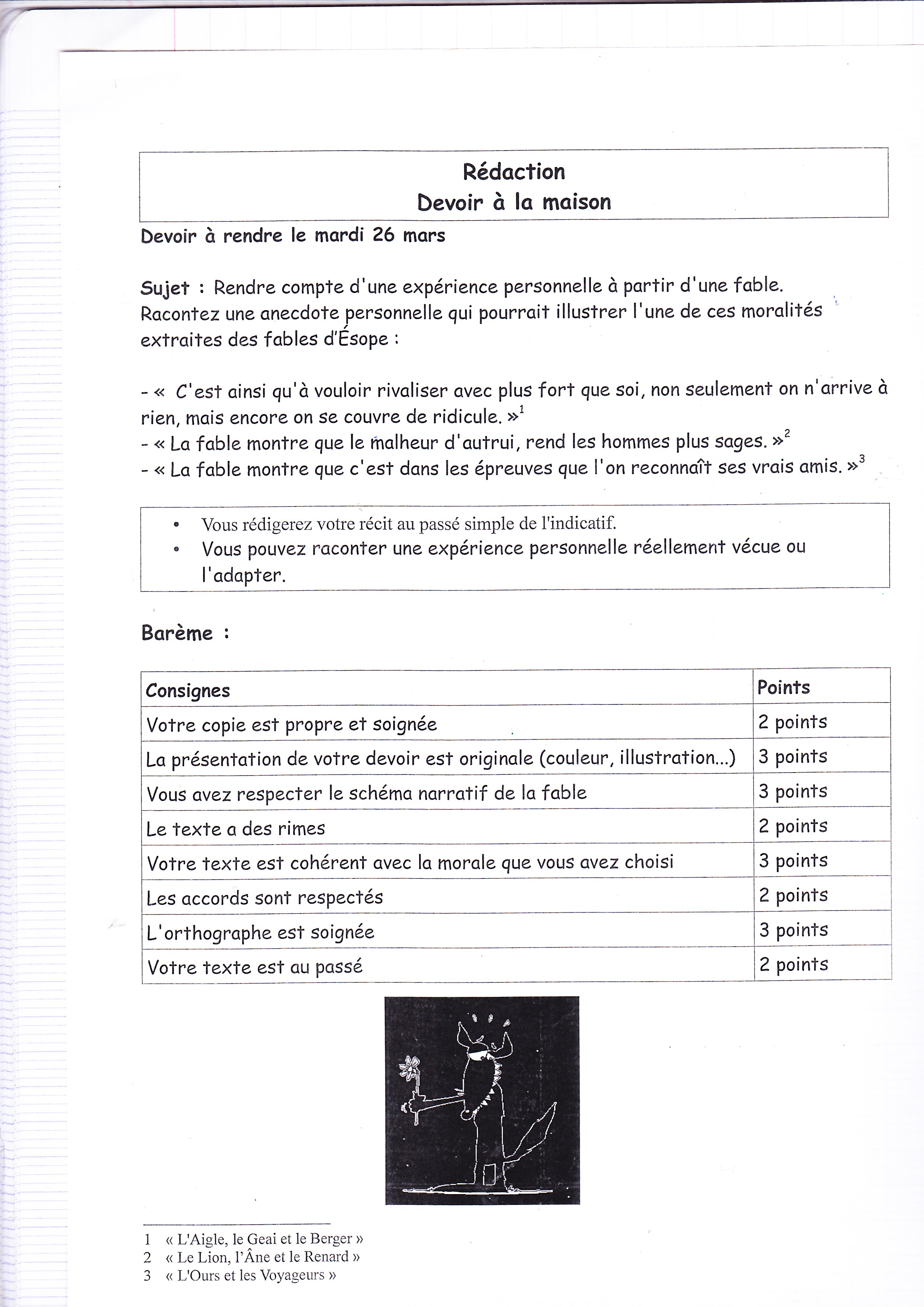 Ayant choisi la troisième morale, l'histoire que tu as écrite correspond parfaitement au sujet. N'hésite pas à la fin de ta fable à reformuler la morale choisie en une maxime (une sorte de proverbe), tu veilleras à la séparer du reste de ton texte par un blanc de 4/5 lignes.