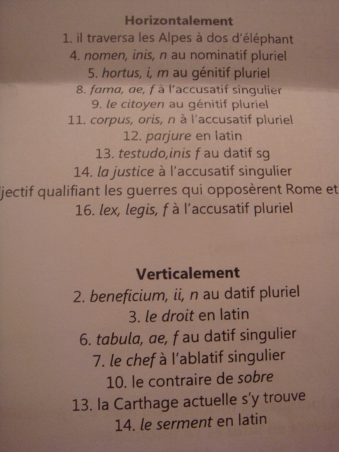 J'ai déjà essayé de chercher (j'avais pensé à EBRIUS pour la 10 (-> ivre)), et franchement, je désespère. J'ai demandé à d'autres latinistes de m'aider, mais eux aussi cherchent...