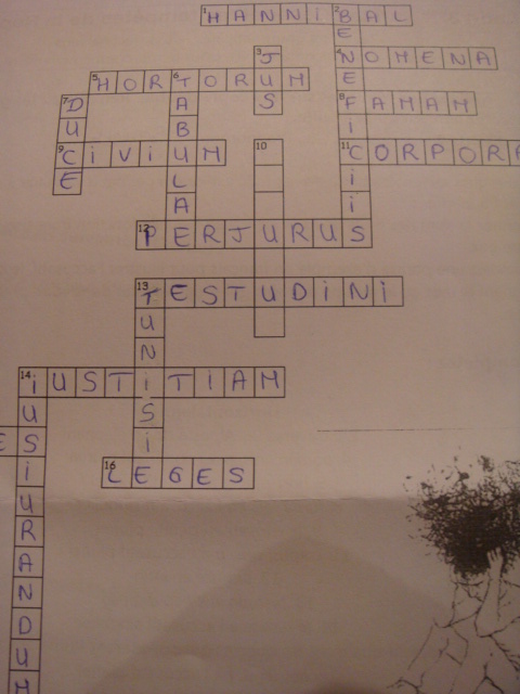 J'ai déjà essayé de chercher (j'avais pensé à EBRIUS pour la 10 (-> ivre)), et franchement, je désespère. J'ai demandé à d'autres latinistes de m'aider, mais eux aussi cherchent...